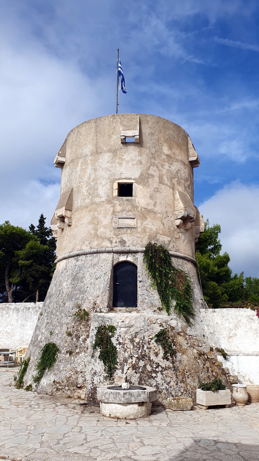 de vigilancia de piedra junto al katholikon se construyó en 1561 para proteger el monasterio de los piratas.