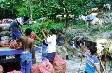compran estos sus mercancías y comida y la transportan en burros hasta sus casas