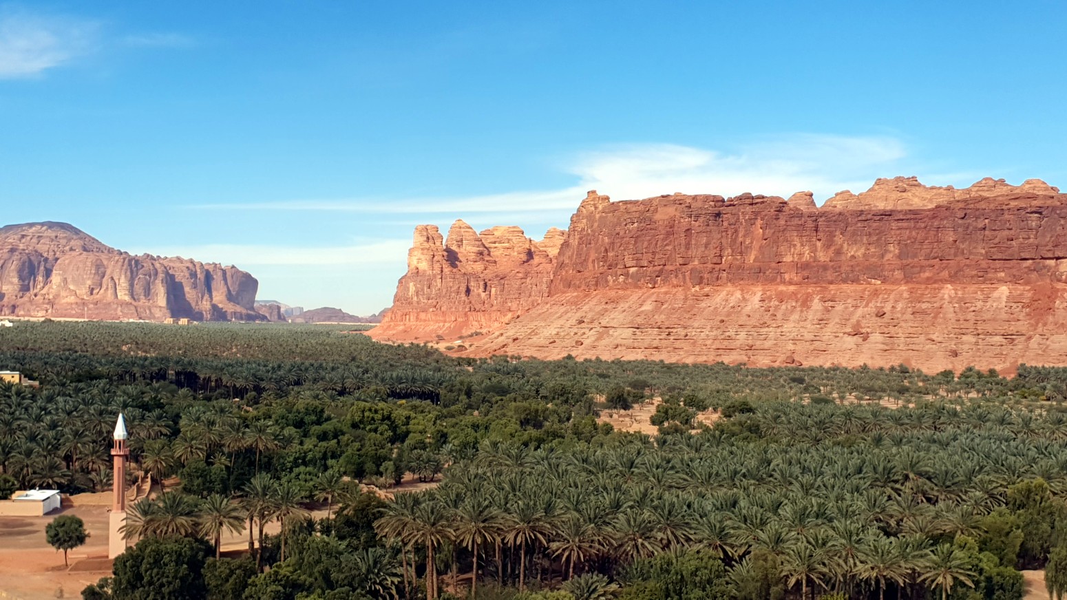 por el enorme oasis que hay en el valle y que lo cubre todo