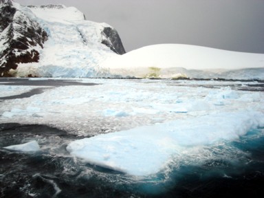 Australiano, el cual contrasta con esta fría y helada Isla Petermann. de apenas
