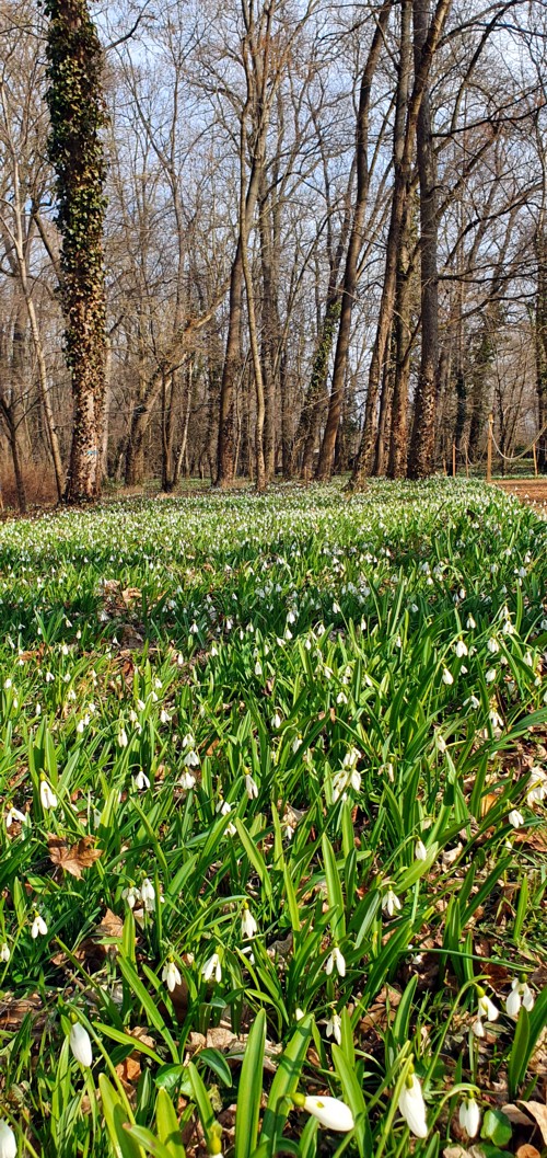 las fantásticas "gotas de nieve" (Snowdrops). Un campo de flores blancas como la nieve, que ofrece una vista maravillosa y se extiende