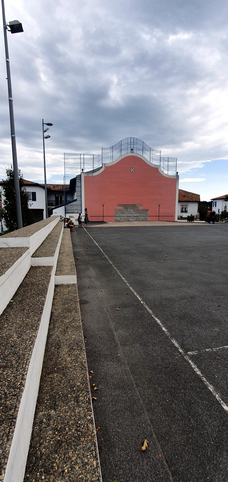 También y como en cualquier pueblo vasco, tiene un frontón típico en color rosa para jugar a la pelota vasca...