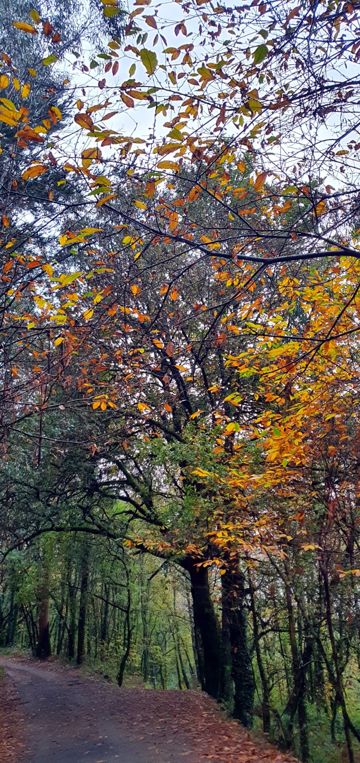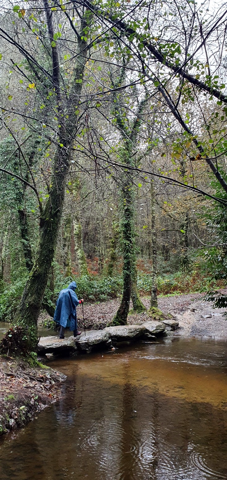 Es una etapa muy bonita y entretenida continuando por caminos rurales de naturaleza verde y casi siempre como de costumbre bajo la lluvia.