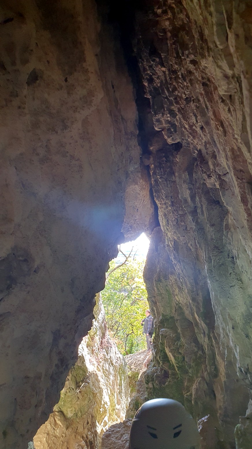 que ir provisto de una frontal y un casco para evitar golpes accidentales en la cabeza.