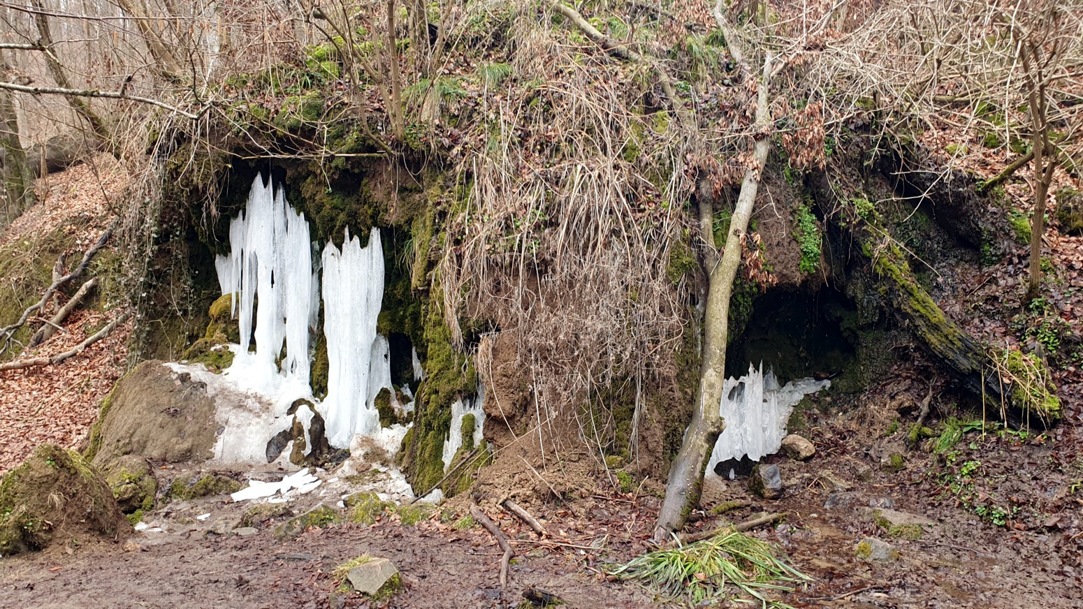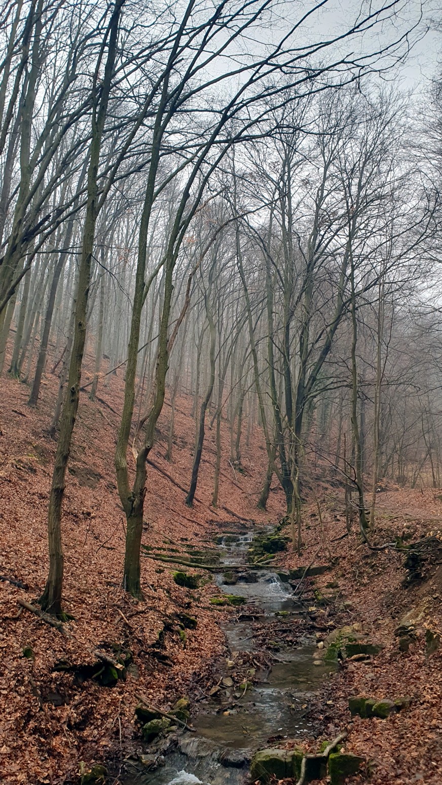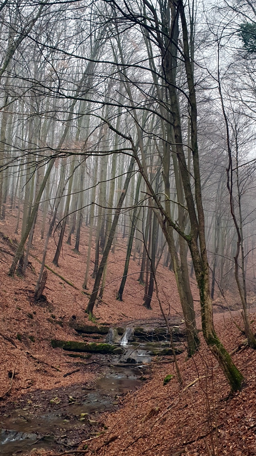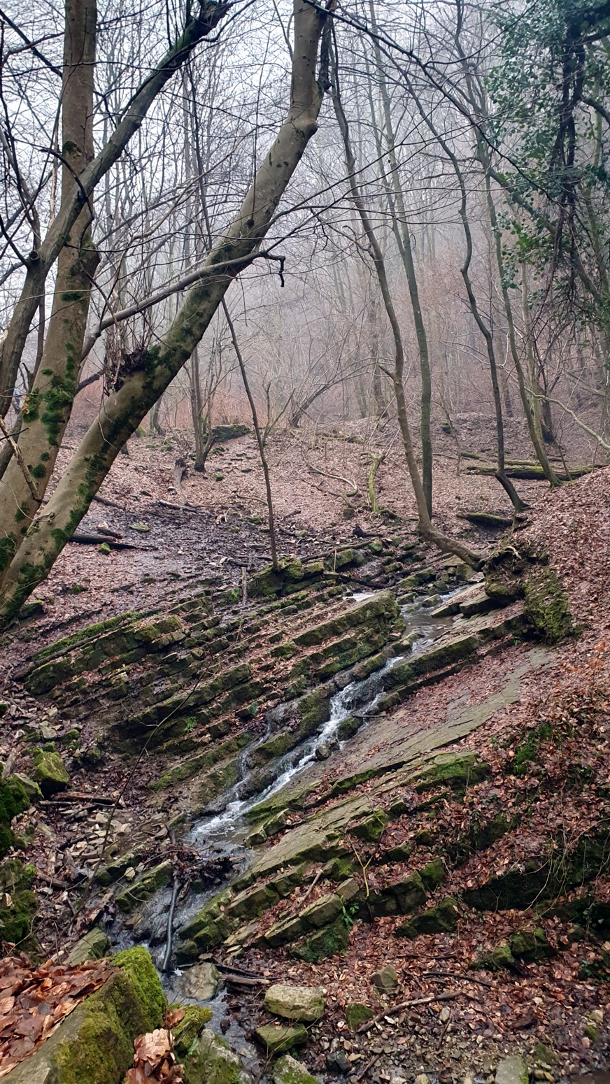 que formaba pequeñas cascadas a modo de escalones y todo en medio del bosque que aun permanece hibernando y sin hojas.