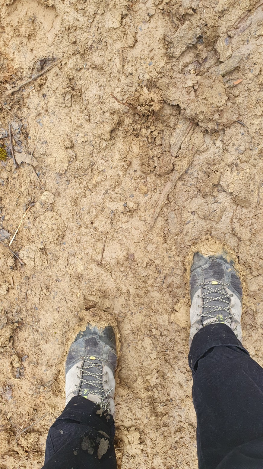 Frío, mal tiempo y mucho, mucho barro lo que hace muy pesado el camino.