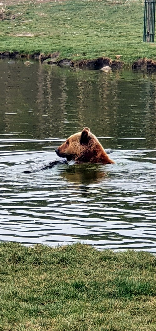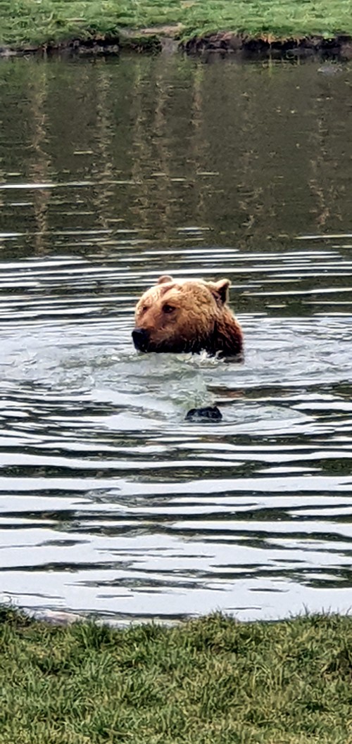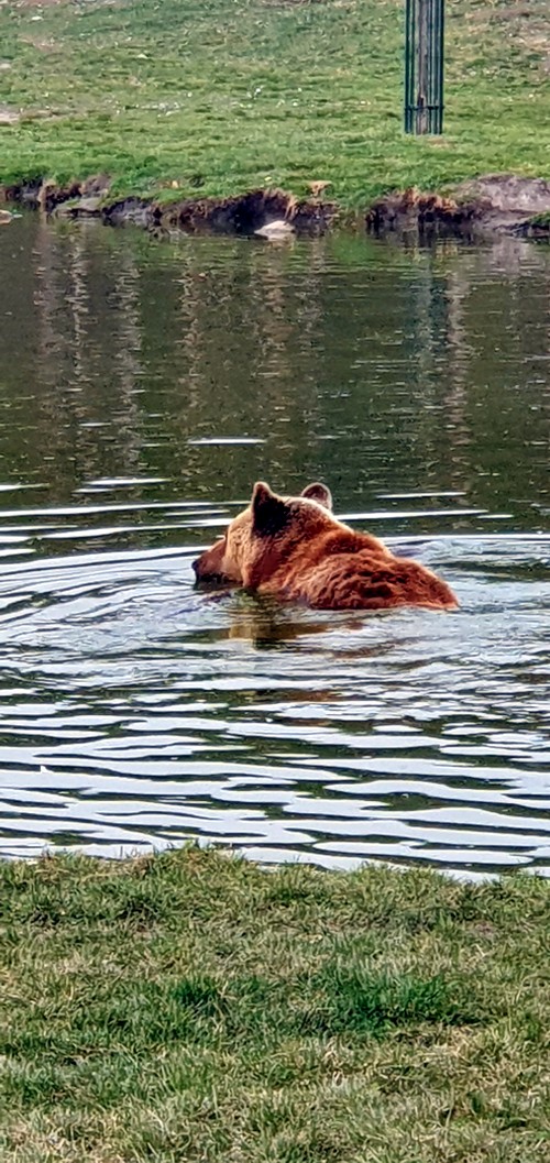 Yo disfrute mucho viendo como un oso no solo se bañaba, sino que realmente nadaba de lado a lado de su lago particular.