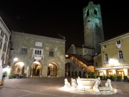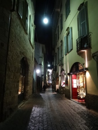 Después de patear Bergamo durante el día, debemos recordar que estamos en Italia, así que después de comer varios "gelattos", llega la hora de la cena, y en los escaparates de los restaurantes te atraen con lo más típico del país: pasta (foto 1), y pizza (foto 2) con todas las variaciones inimaginables, luego el café expresso en cualquier barecito típico (foto 3), y mientras tanto la noche ha llegado, y se puede volver a hacer el recorrido de la mañana, pero ahora en vez de con la luz del sol con la de la luna llena, y las luces de neón...es otra Bergamo igual o más interesante (fotos 4 a 13)...