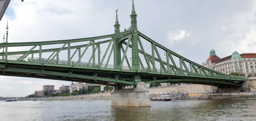 uniendo los puntos mas conocidos, partiendo del muelle de la parada de tranvia de Vigado y pasando por el Parlamento, Gellert,