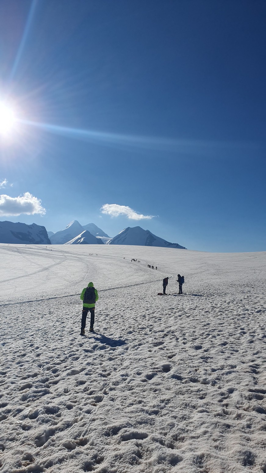 Pero nosotros hemos subido hasta aquí arriba para escalar el "Breithorn" una montaña de 4164 metros de altura.