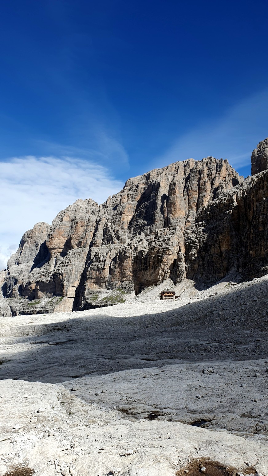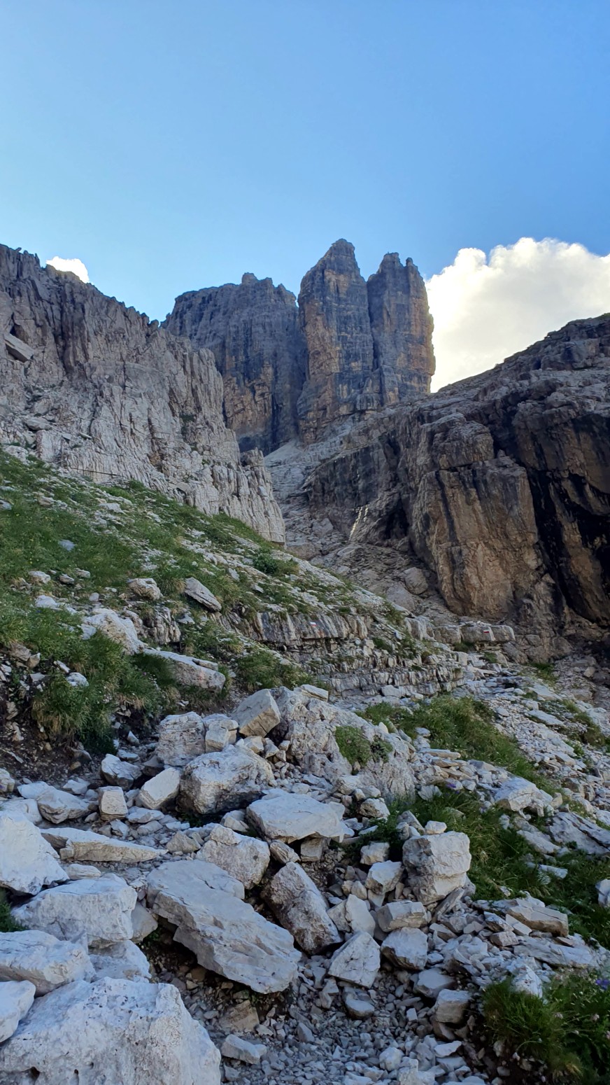 El itinerario se puede hacer en el sentido de las agujas del reloj desde Rifugio Alimonta a Bocca di Brenta, o en sentido contrario a las agujas