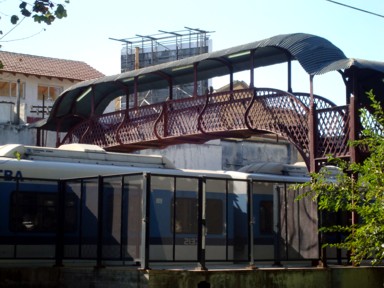 Un trencito les comunica con la ciudad , la curiosa pasarela que une los andenes