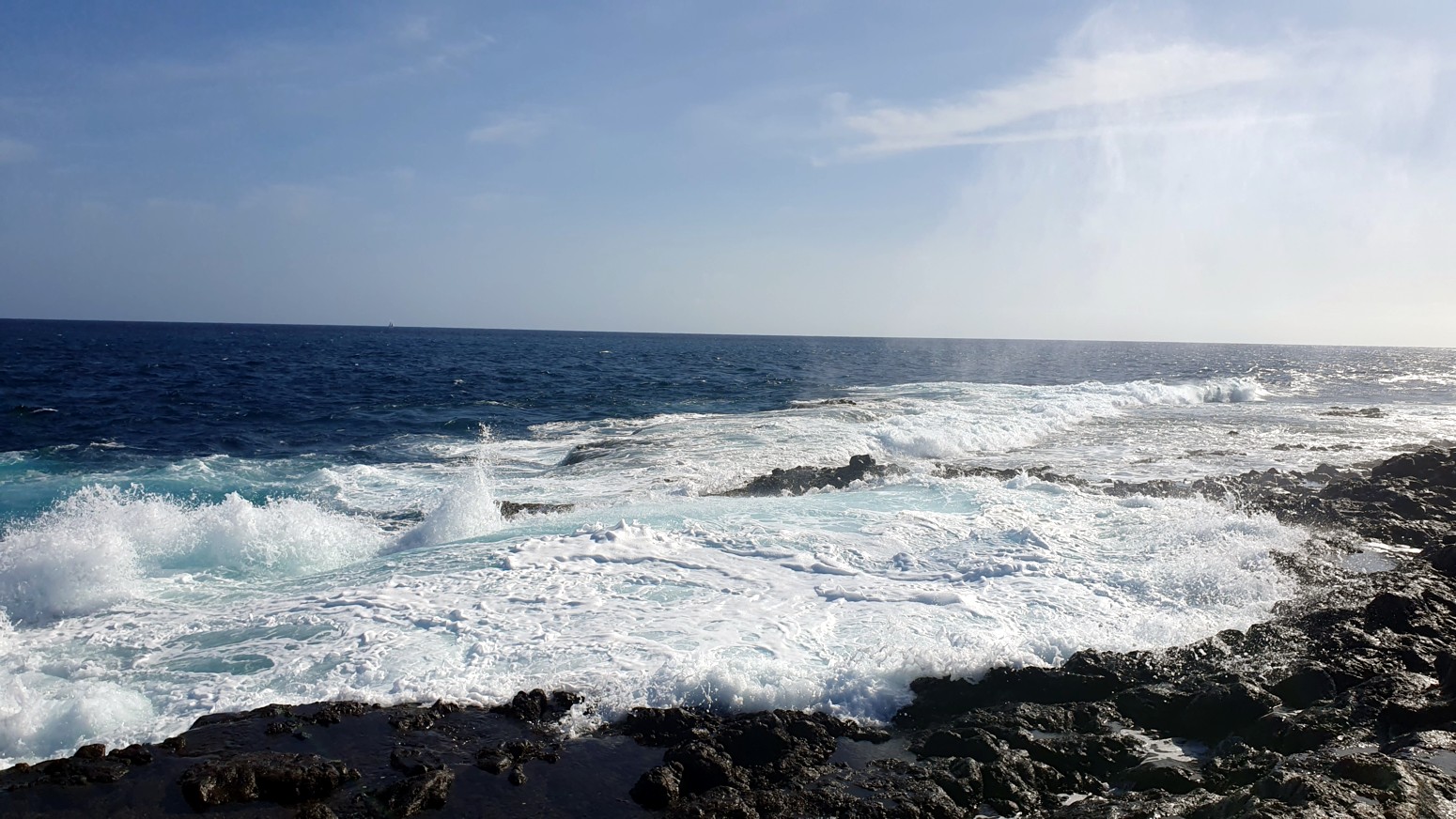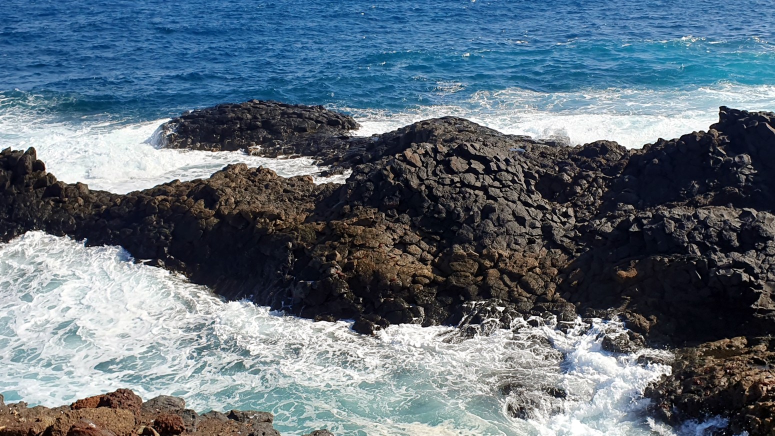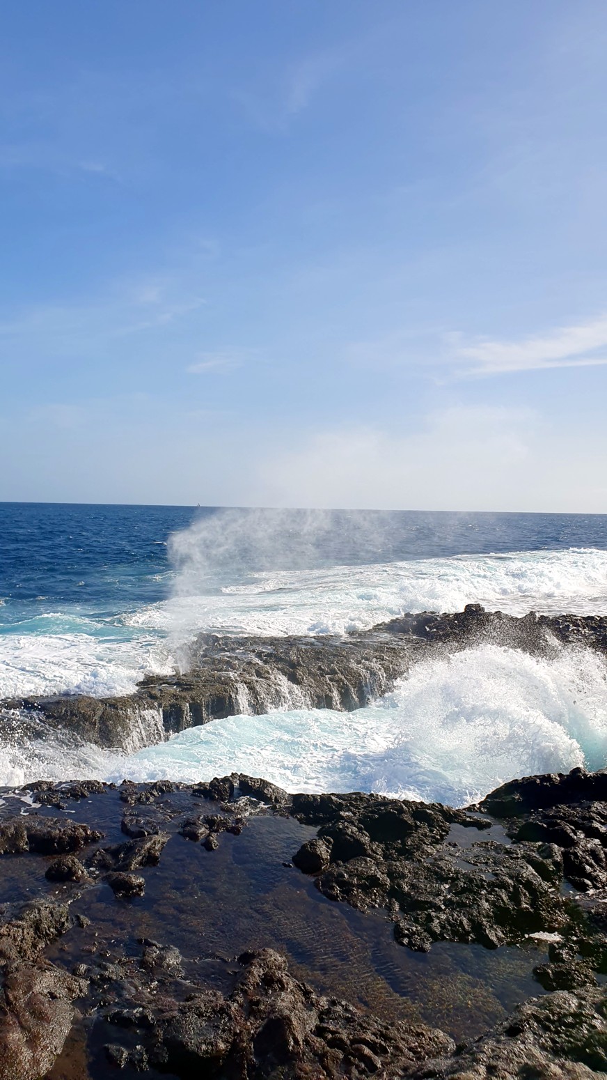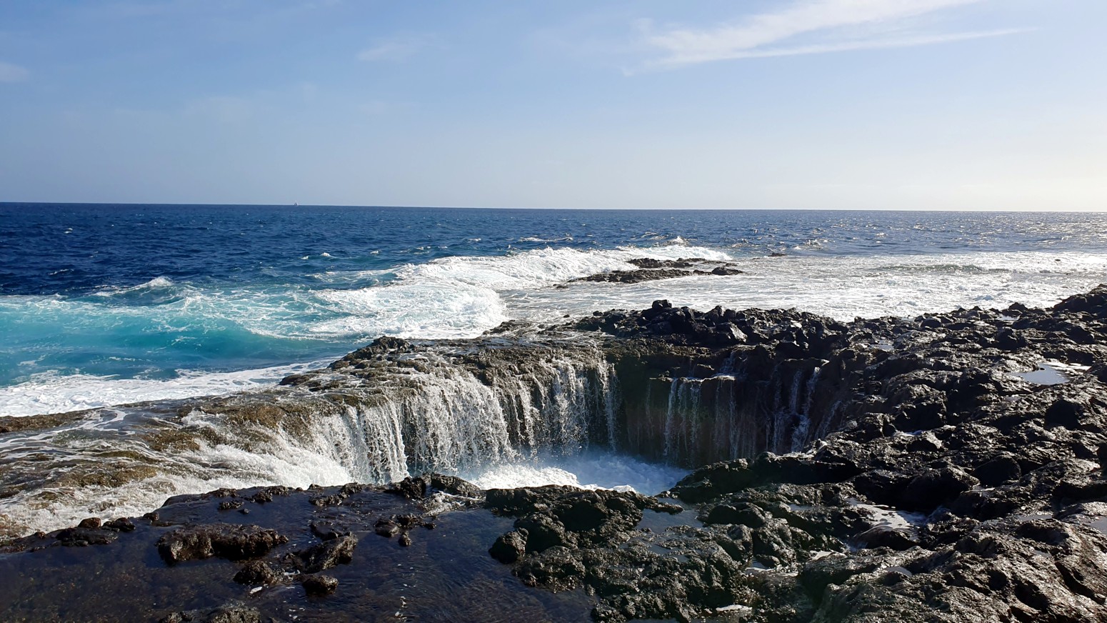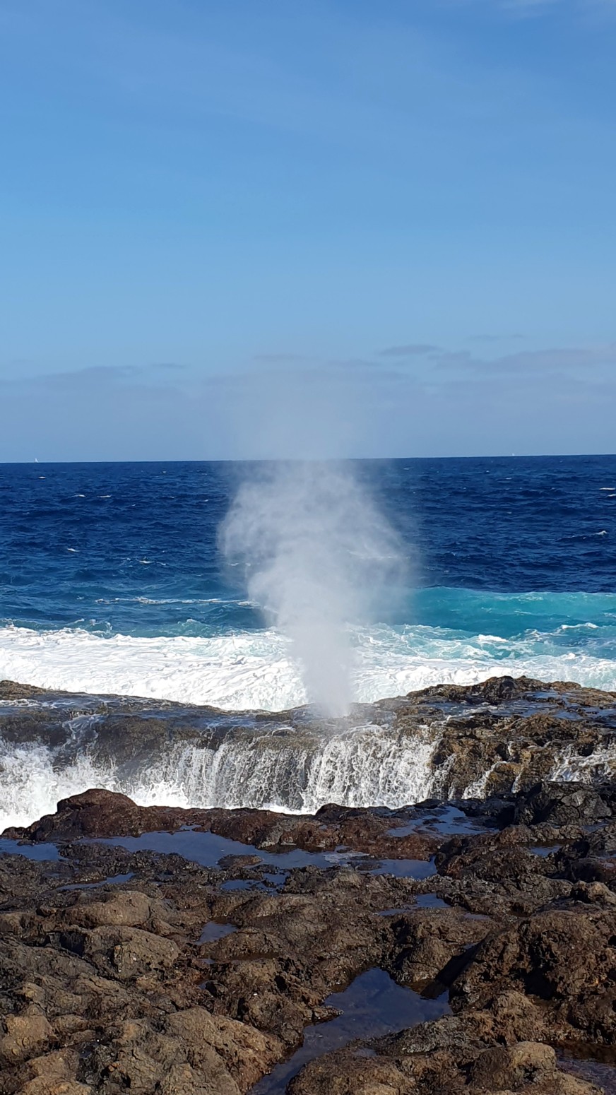 una chimenea natural donde el agua sale despedida hacia arriba por el hueco a modo de géiser y produciendo un sonido