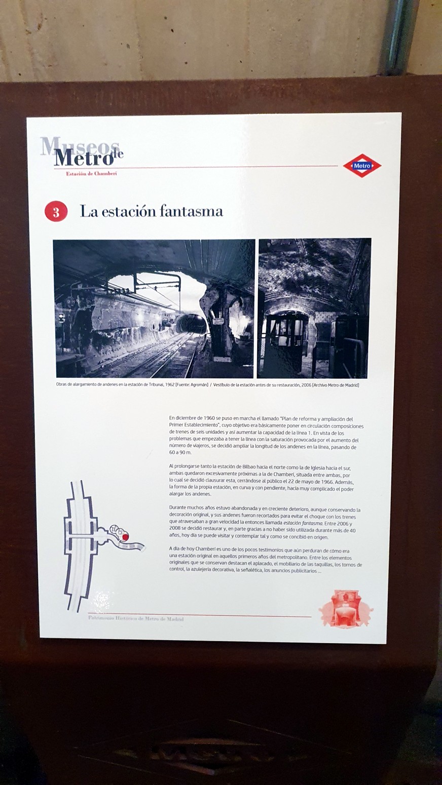 Se han restaurado integralmente los muros, bóvedas y carteles publicitarios, así como el mobiliario y los andenes originales. Puedes