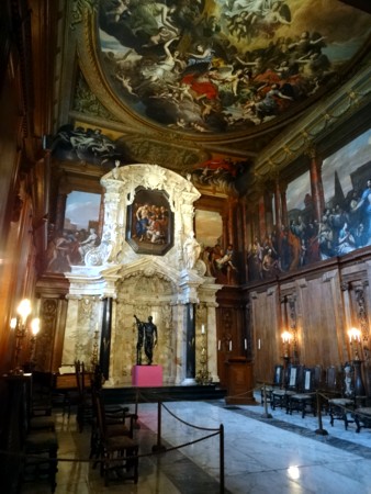 biblioteca, capilla, columnas salomónicas, estatuas (fotos 10 a 13).