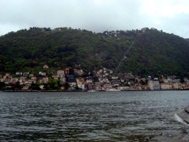hacia lo alto de la montaña donde se adivina un pueblo, es Brunate (fotos 1 y