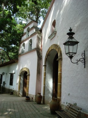 La capilla esta ubicada en uno de los extremos de la misión, y se observa la