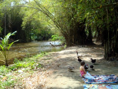 la brisa marina, y ya protegidos por la tremenda vegetación del lugar, el viento