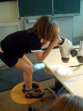 insectos por microscopio, permitiéndoles posturas no muy "ortodoxas" al mirar