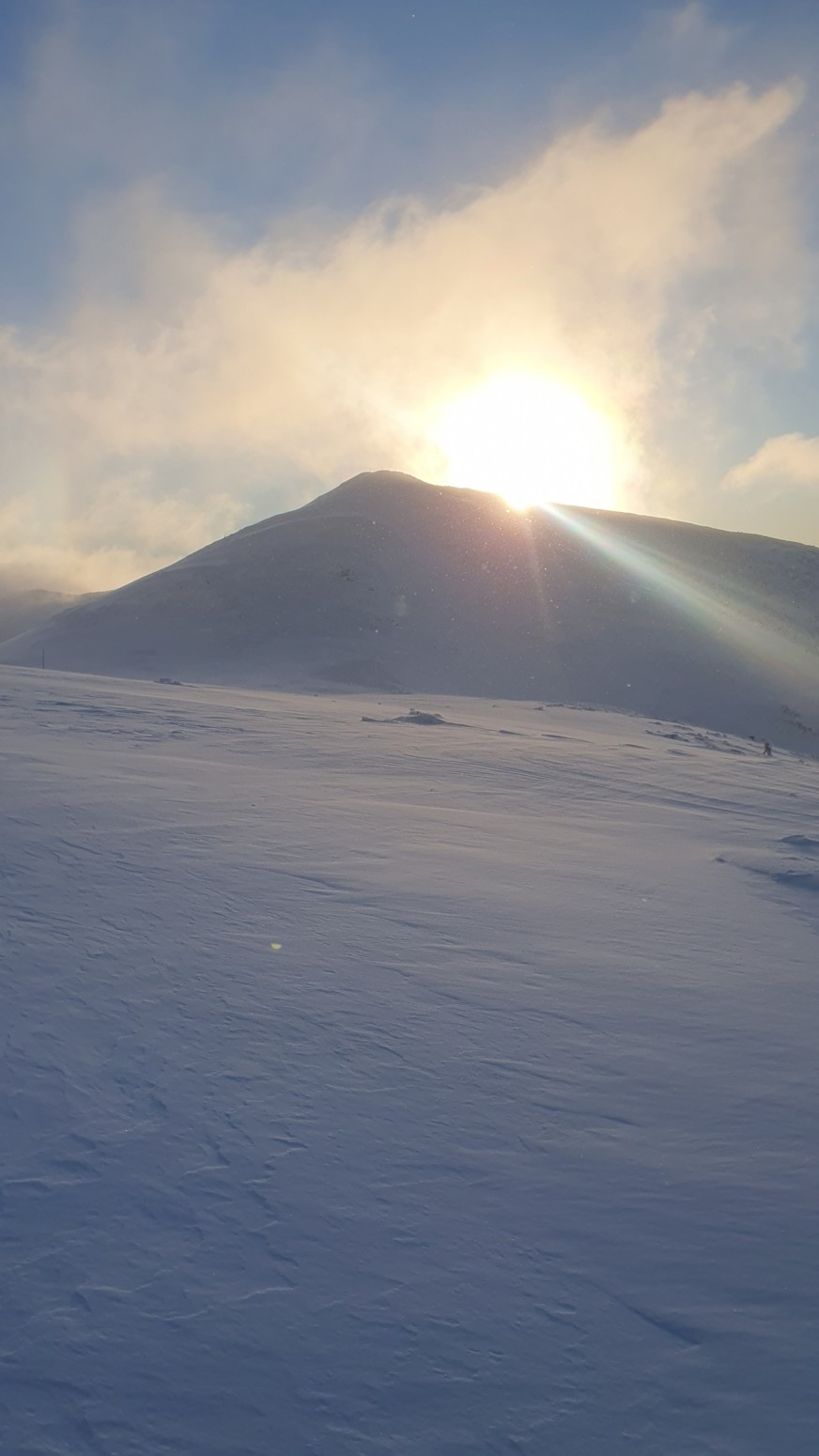nuestras raquetas y hacemos pico sin dificultad y solos antes de que empiezan a llegar esquiadores de montaña