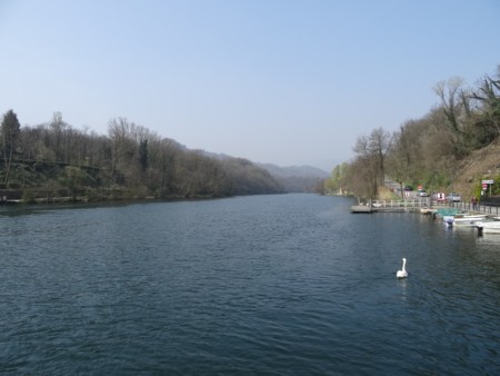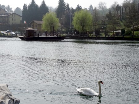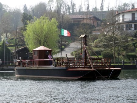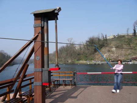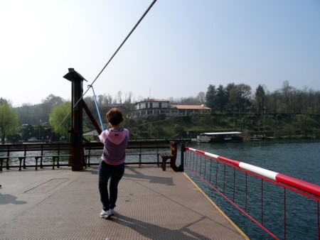 es cruzar aquí el río a la otra orilla a la población de Imbersago en un