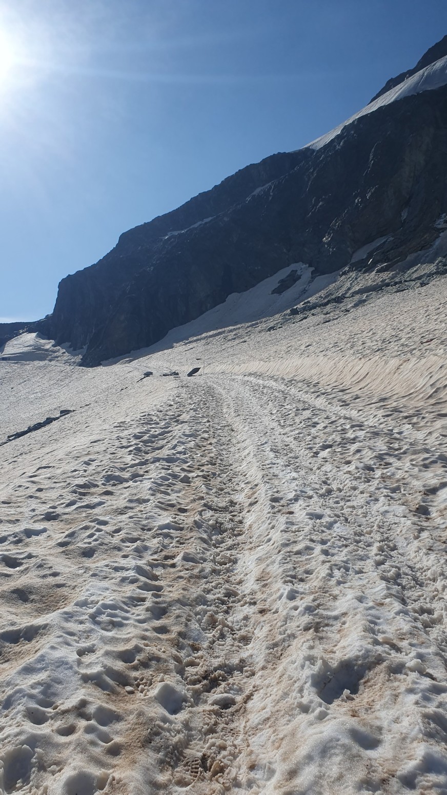 Nuestro camino comienza en un nevero que debemos cruzar y que al final da acceso al