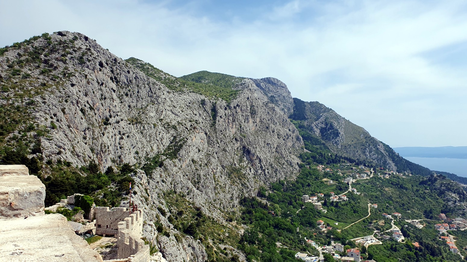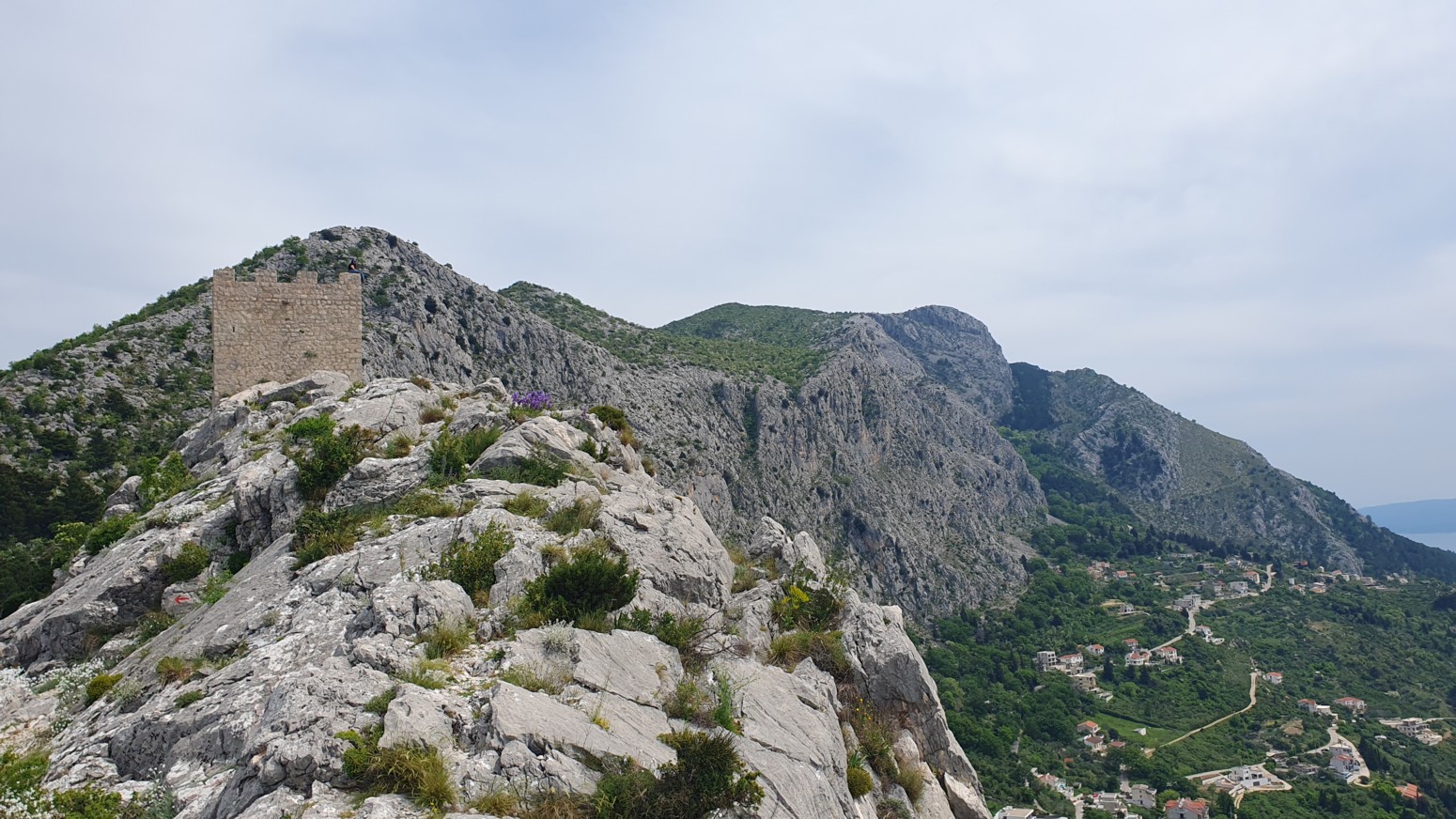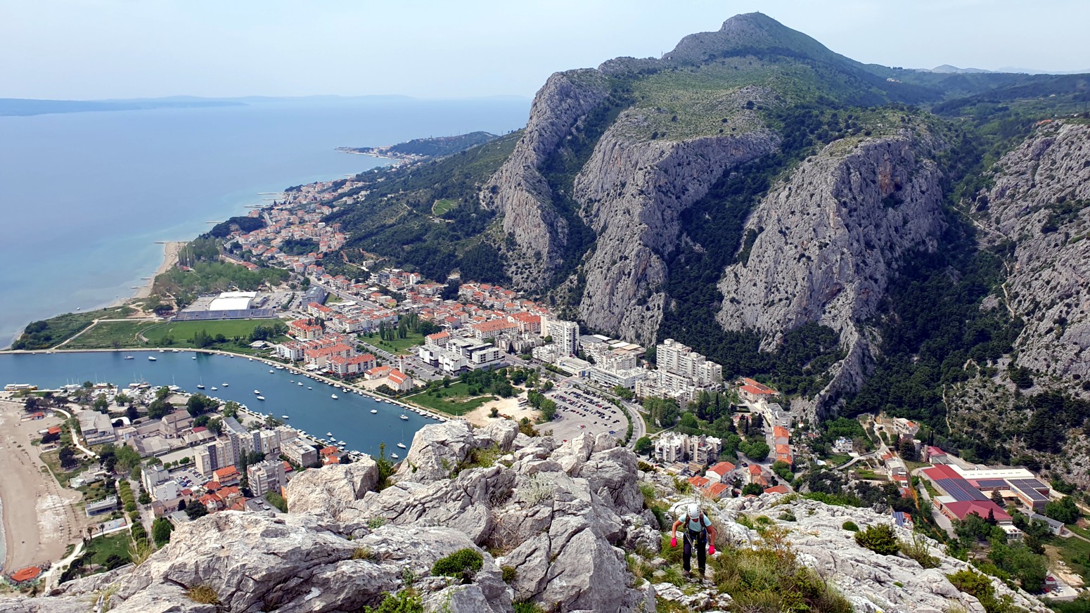 La ruta sigue una línea natural por la cresta de la montaña y ofrece impresionantes vistas de la ciudad, el río Cetina y