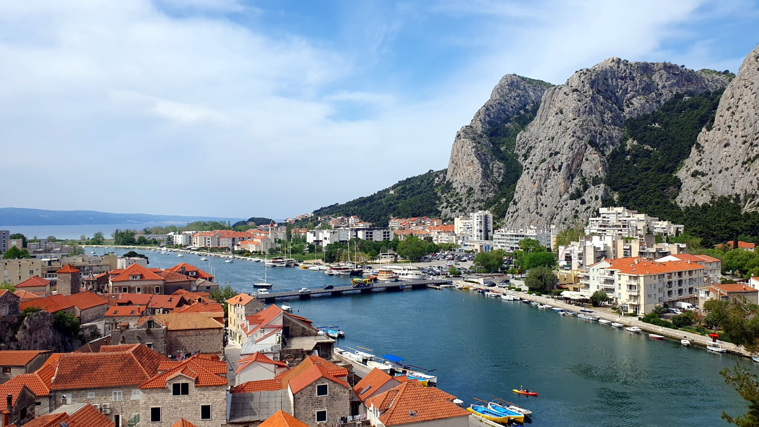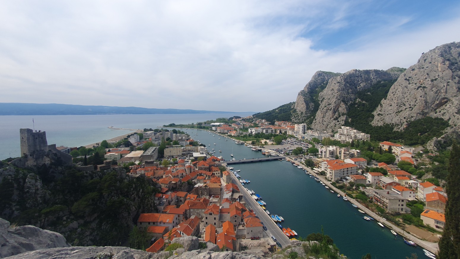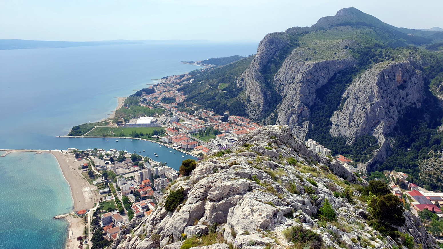 La ruta sigue una línea natural por la cresta de la montaña y ofrece impresionantes vistas de la ciudad, el río Cetina y