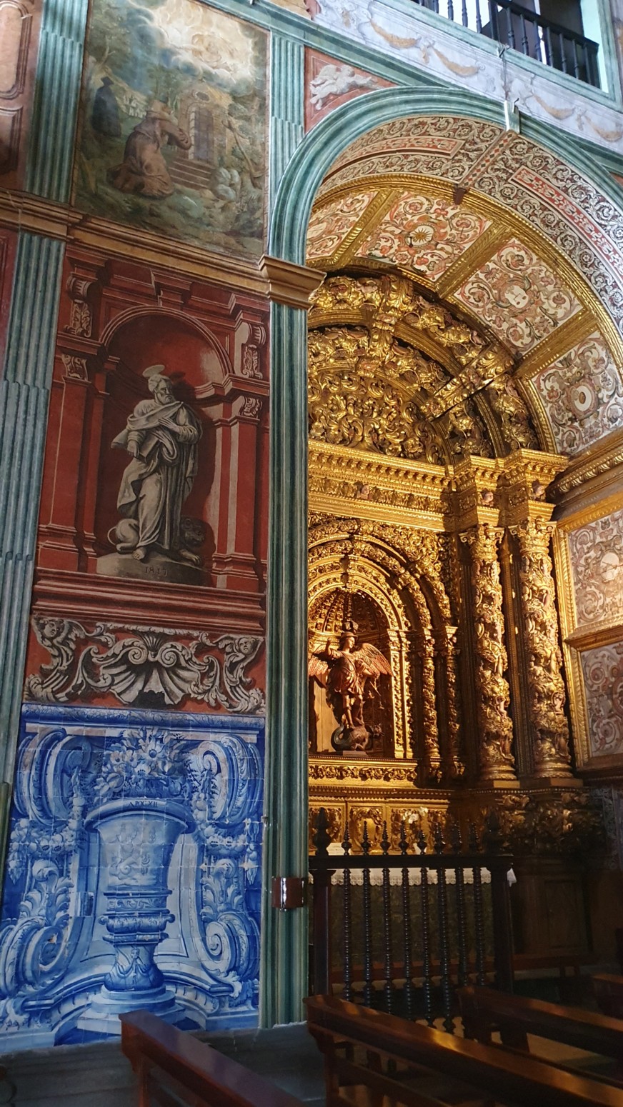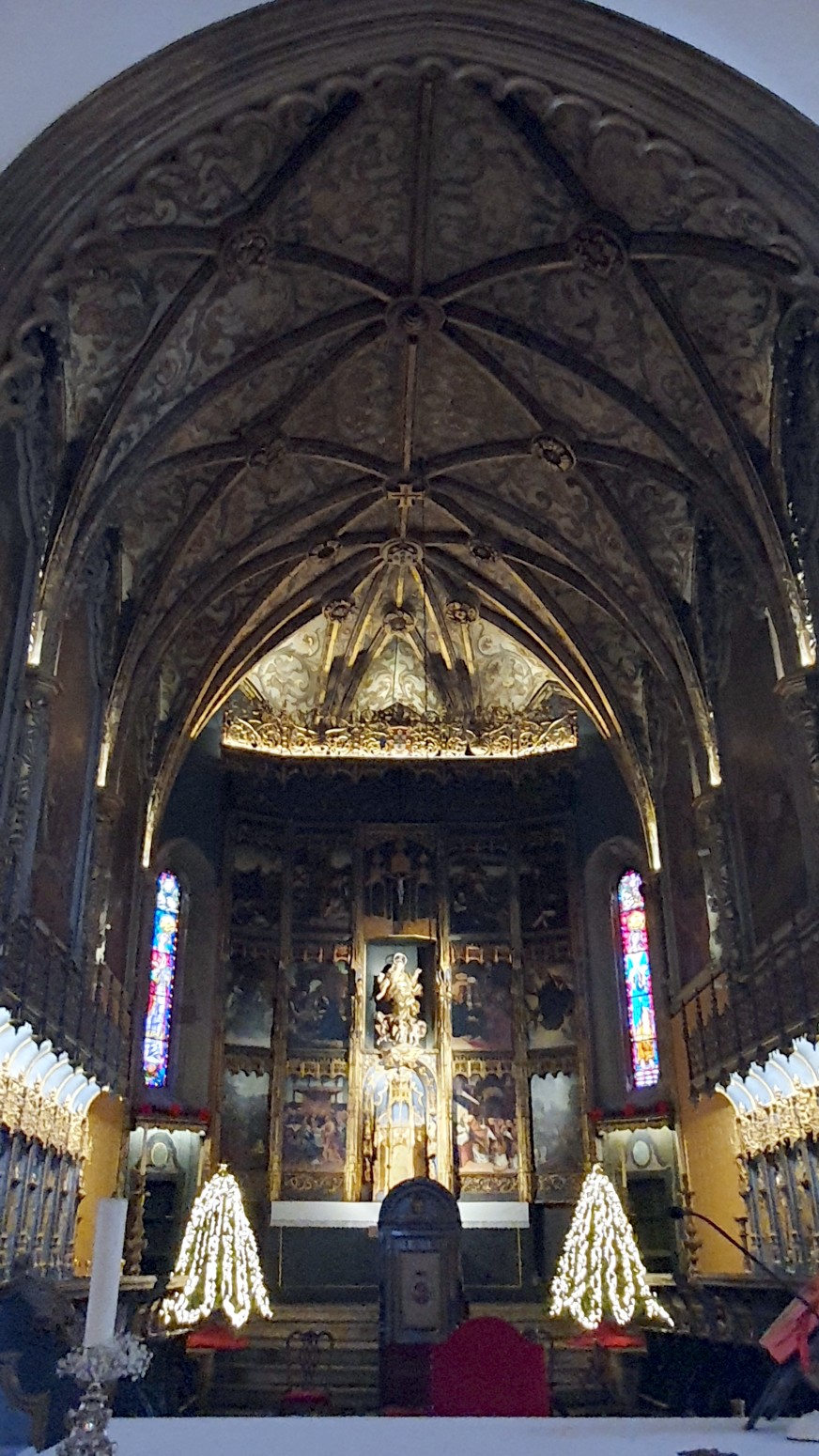 pero el interior de estilo mudéjar ricamente decorado y especialmente el techo de madera de cedro morisco definitivamente merecen una
