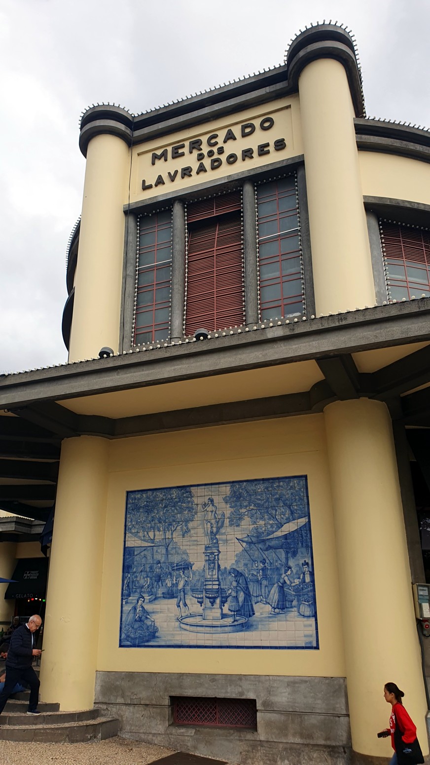 El Mercado Dos Lavradores es un edificio histórico de dos niveles con un patio abierto que sirve como mercado para los productos alimenticios