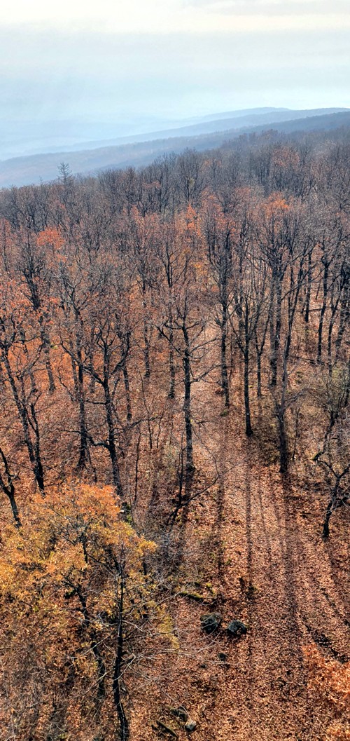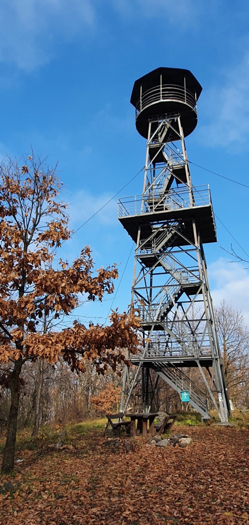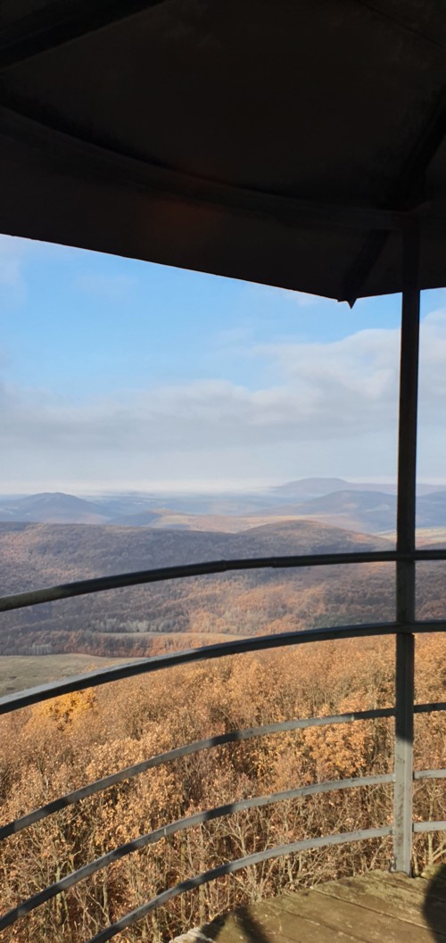 una torre de observación con buenas vistas siendo visible incluso el castillo de Holloko en la distancia.