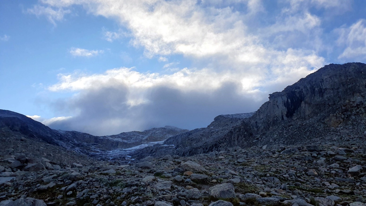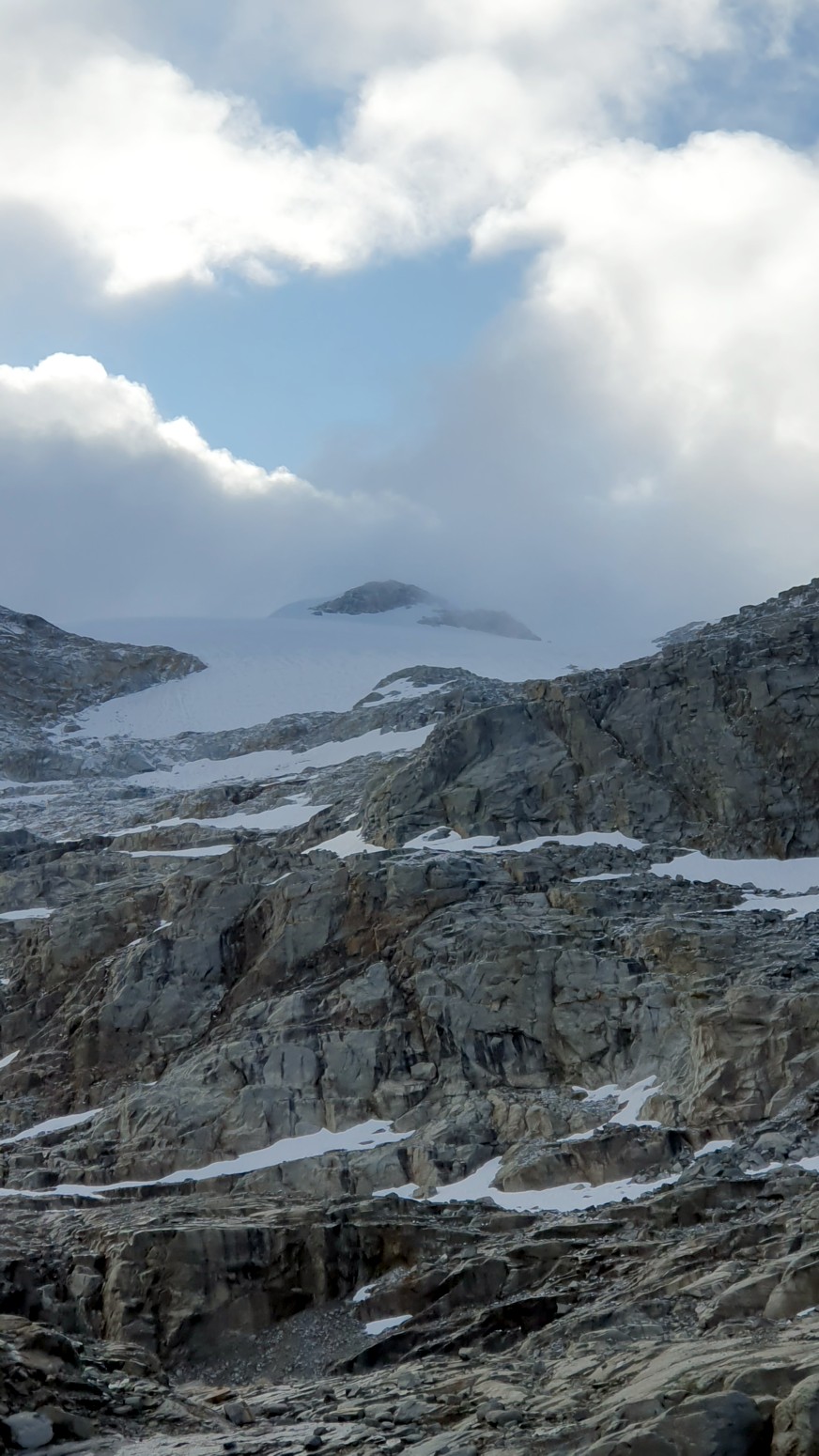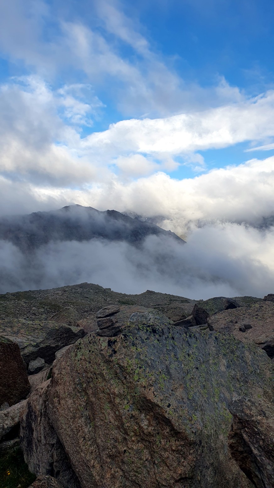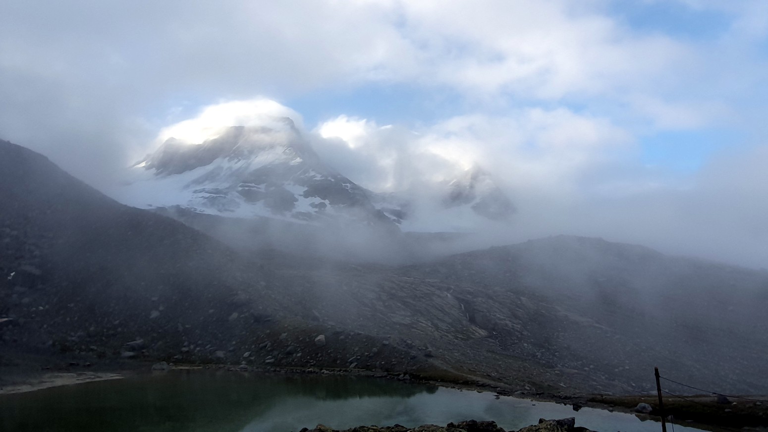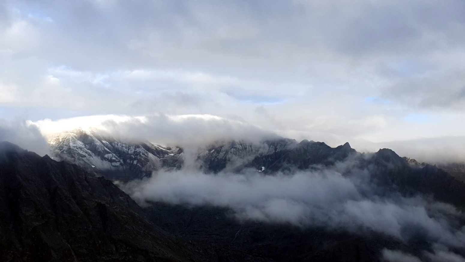 Alrededor del refugio el tiempo se ha calmado, pero arriba, sigue totalmente cubierto y por tanto y para no perder el