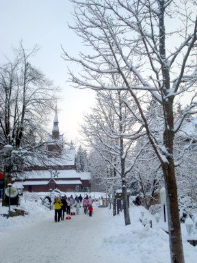 plagada de esquiadores. Su centro son unas pocas calles peatonales por las que
