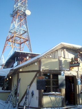en lo más alto, donde hay un pequeño refugio donde poder tomar algo caliente