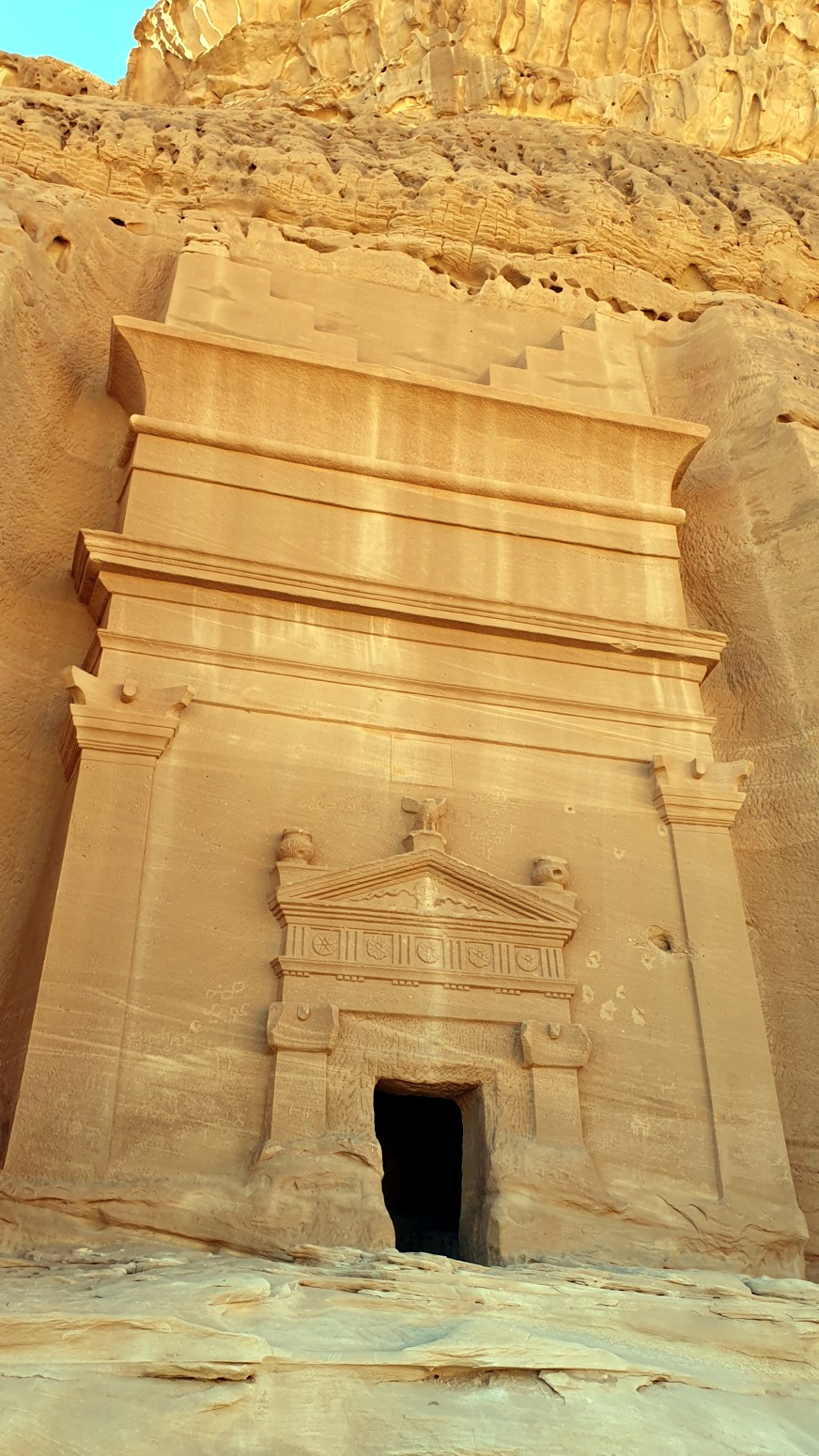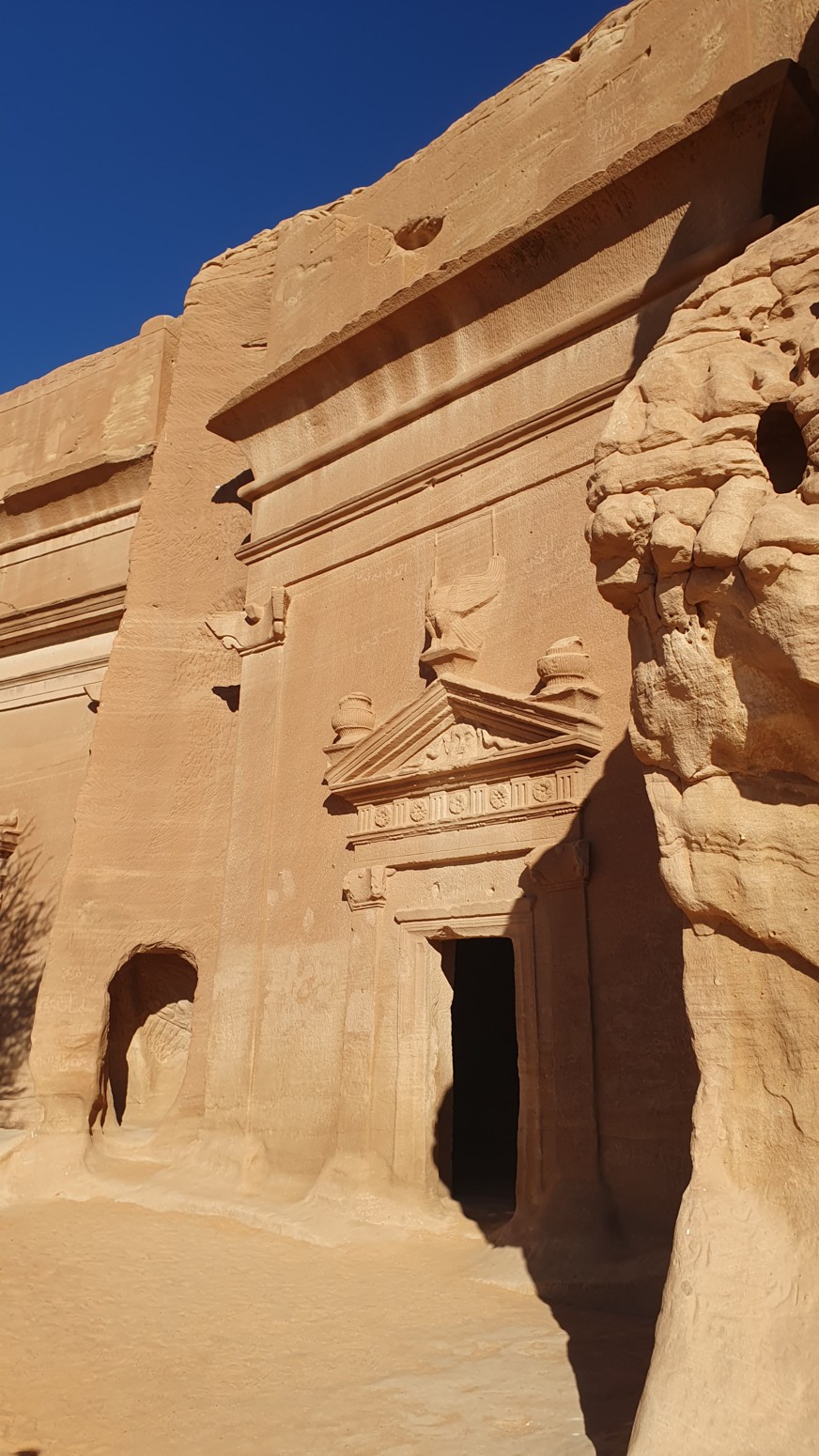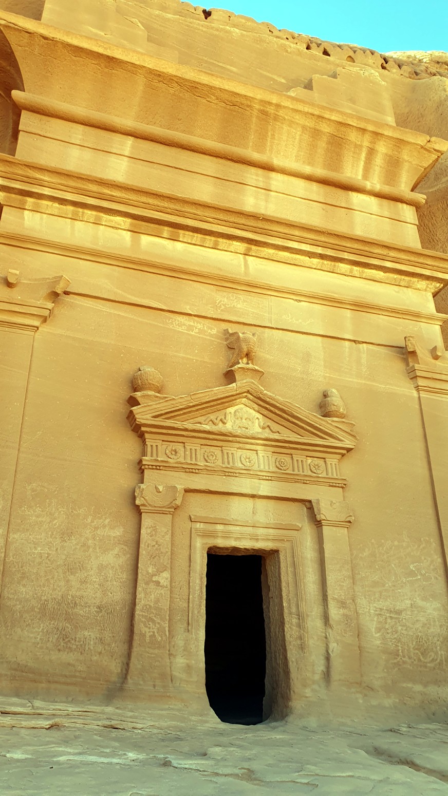 Hogar de los nabateos, que como hicieran en Petra, en Jordania, esculpieron sus tumbas en las rocas, Hegra se acabó convirtiendo en una gran