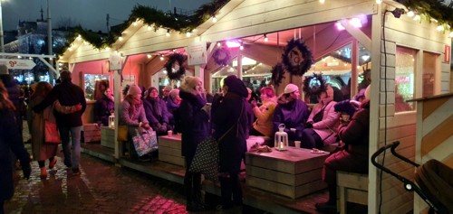 Y por supuesto el gran mercado de navidad entre la explanade y el puerto. No falta