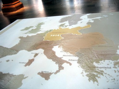 un gran mapa de Europa, en el que se proyectan los límites del territorio alemán