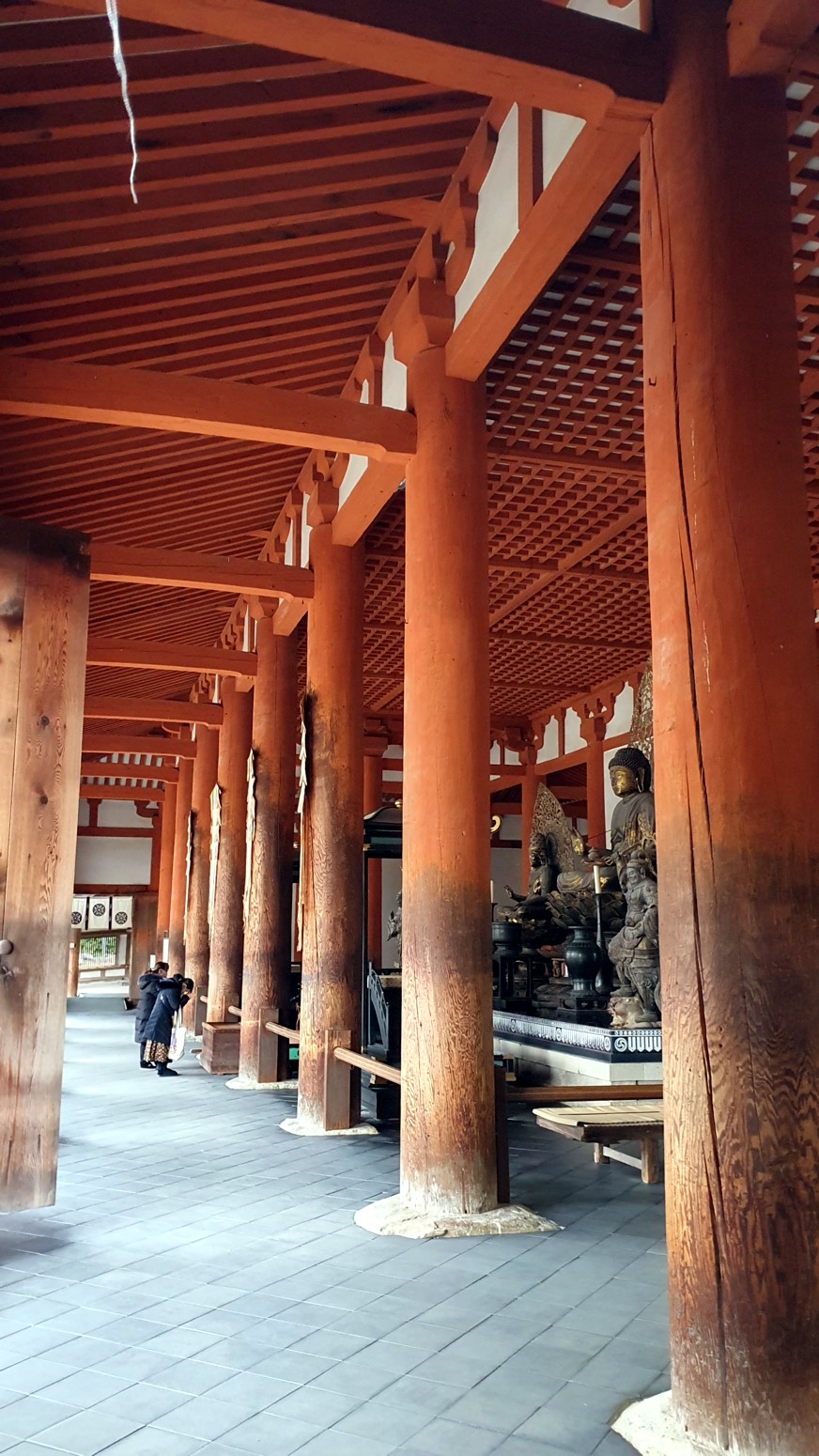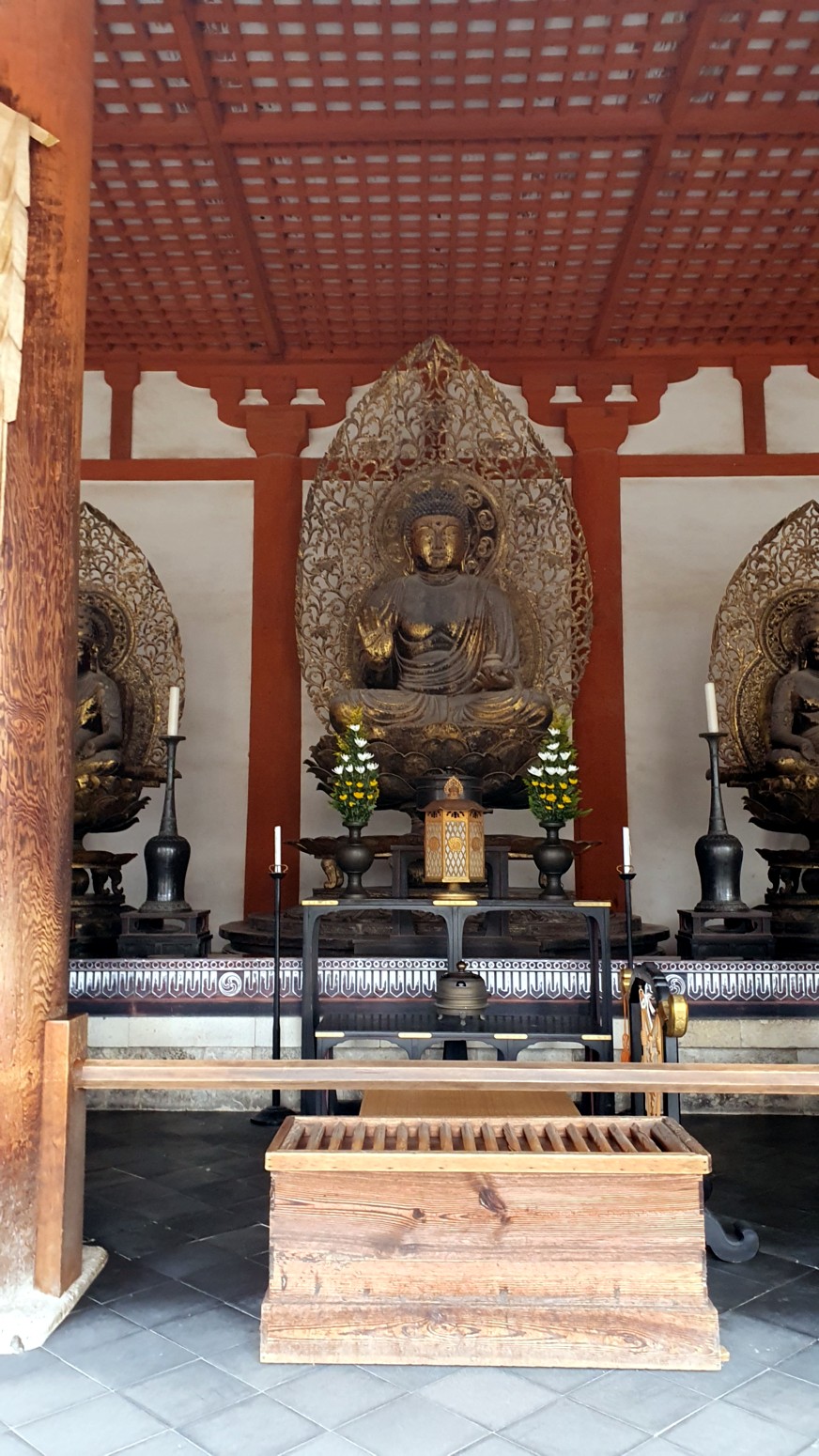 idénticamente. Su interior conserva unas estatuas de Budas que incluyen una representación de la tríada shaka. Es decir, Sakyamuni, el Buda histórico también conocido como