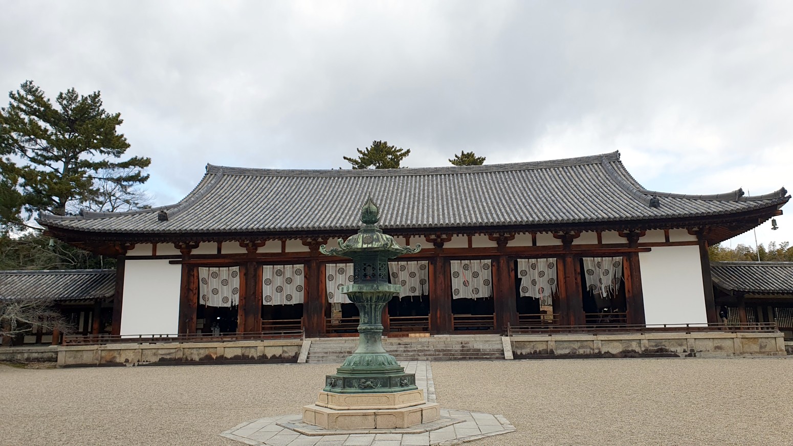 El lugar es muy grande y tiene varias partes diferenciadas: La sección oeste (Sai-in), con su pagoda de cinco pisos, y el Kondo, el pabellón principal que se quemó en 1949