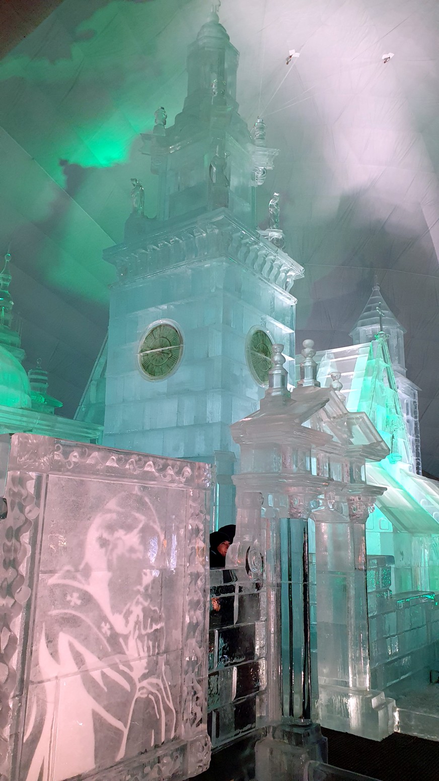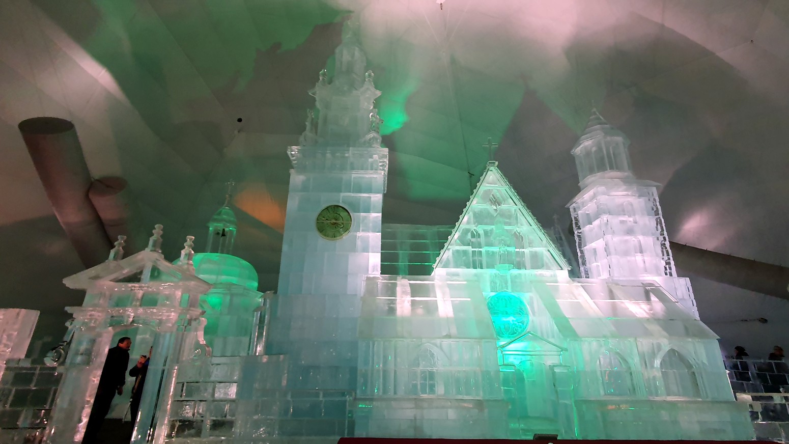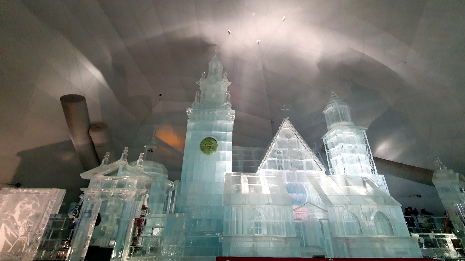 de la atracción mas popular de estas montañas: me refiero claro al "templo de hielo" diferente que construyen cada año.