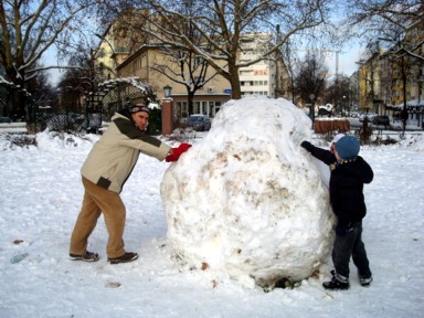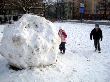 puestos en hacer bolas de nieve, porqué no hacer una gran bola de nieve, una