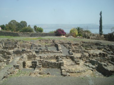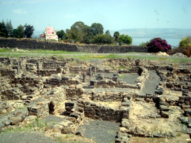Cafarnaun está situada en la orilla norte del lago de Tiberiades, que era el