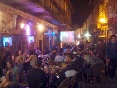 muchos pubs con música en directo, con pantallas gigantes de televisión para ver