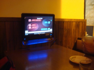 en estos pubs, cada mesa está dotada de una computadora, que a parte de internet