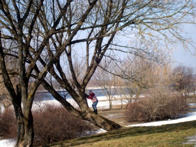 para hacer ejercicio (foto 9), o saltar de placa en placa de hielo junto al río