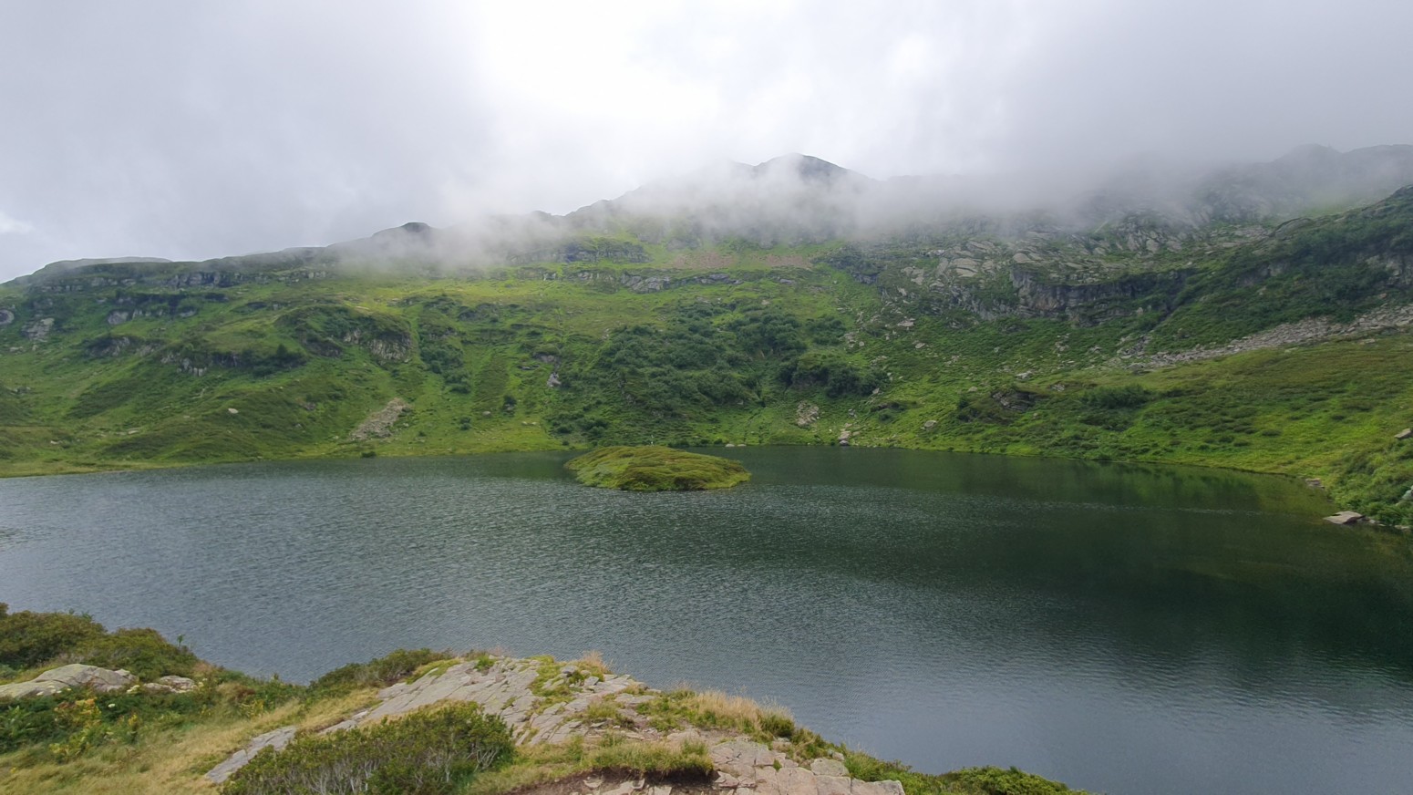 Accesible solo a pie, magníficas vistas de la Chaîne des Fiz, el lago y su islote se encuentran bajo la Pointe Noire de