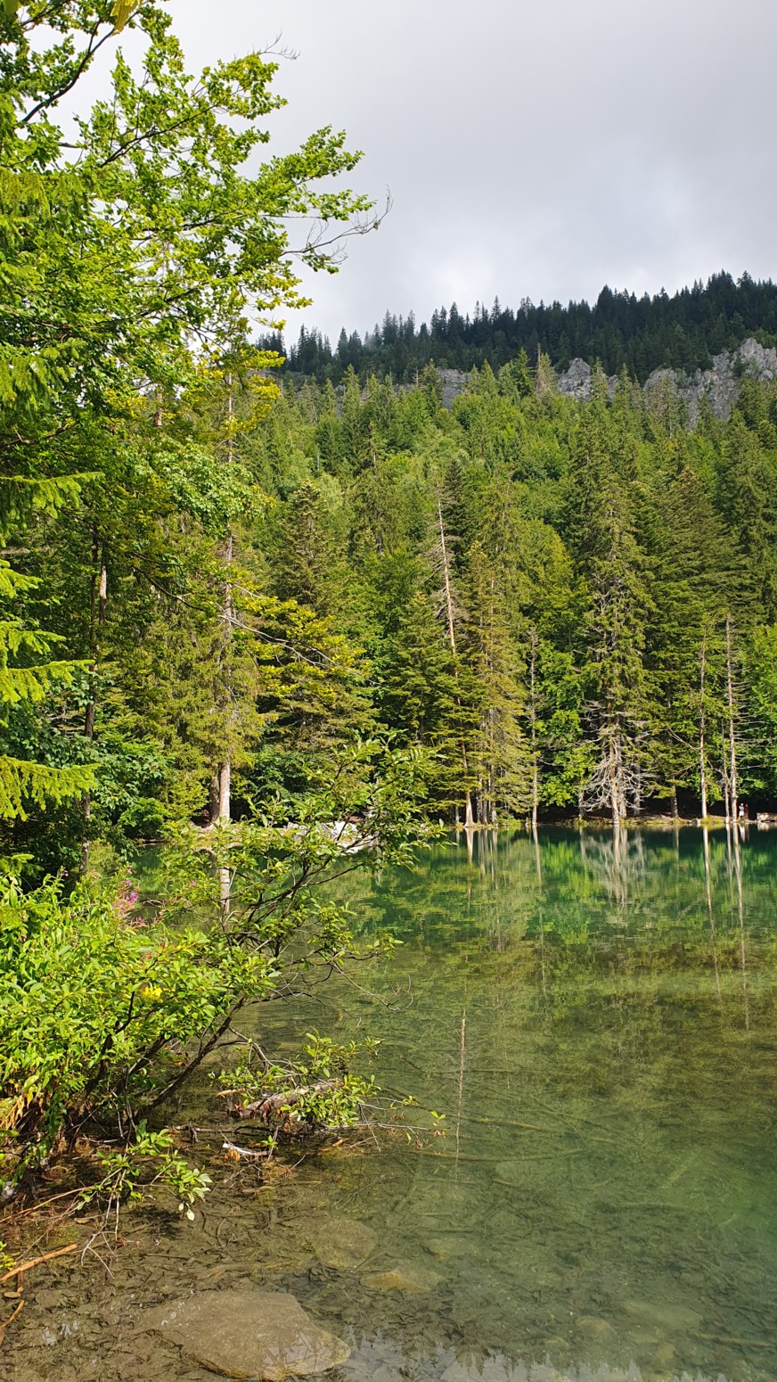 El Lago Verde ofrece aguas esmeralda de rara transparencia, bordeadas de abetos
