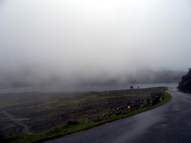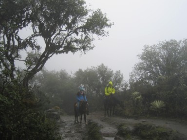 sin ver nada por la niebla, con frío, a más de 4000 metros, y lloviendo. Pues