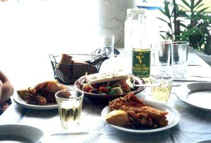 calamares (foto 4),y mejor si ya están fritos y acompañados de una ensalada griega con el