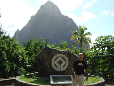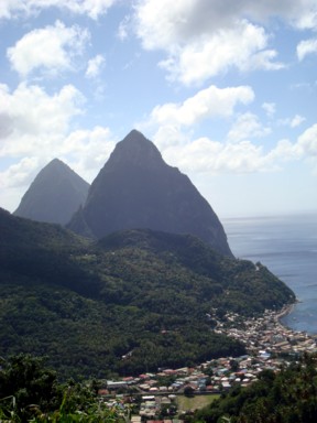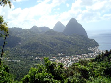 antes de llegar a esta, ya tenemos unas espléndidas vistas de los Pitons (fotos